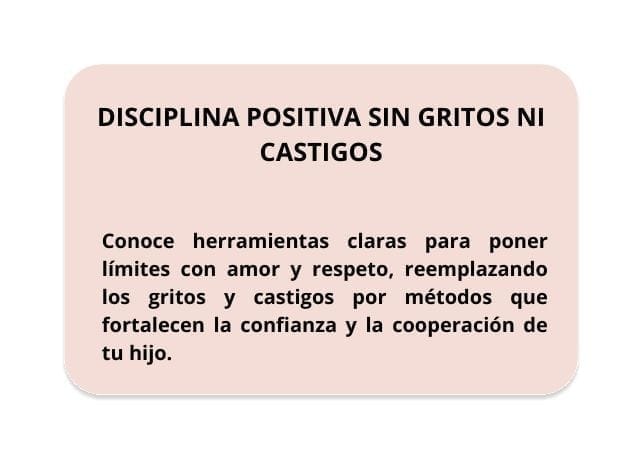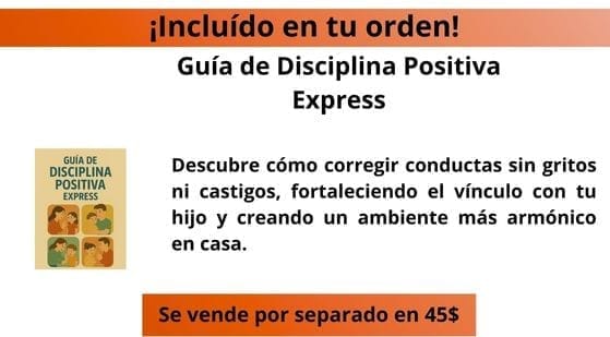 Disciplina positiva sin gritos ni castigos – Conoce herramientas claras para poner límites con amor y respeto, reemplazando los gritos y castigos por métodos que fortalecen la confianza y la cooperación de tu hijo. Valorado en $67