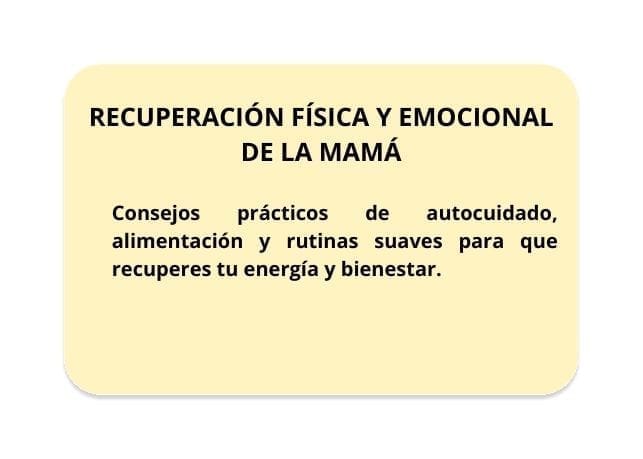 Recuperación física y emocional de la mamá – Consejos prácticos de autocuidado, alimentación y rutinas suaves para que recuperes tu energía y bienestar. Valorado en $45