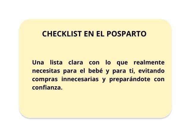 Checklist en el posparto – Una lista clara con lo que realmente necesitas para el bebé y para ti, evitando compras innecesarias y preparándote con confianza. Valorado en $15